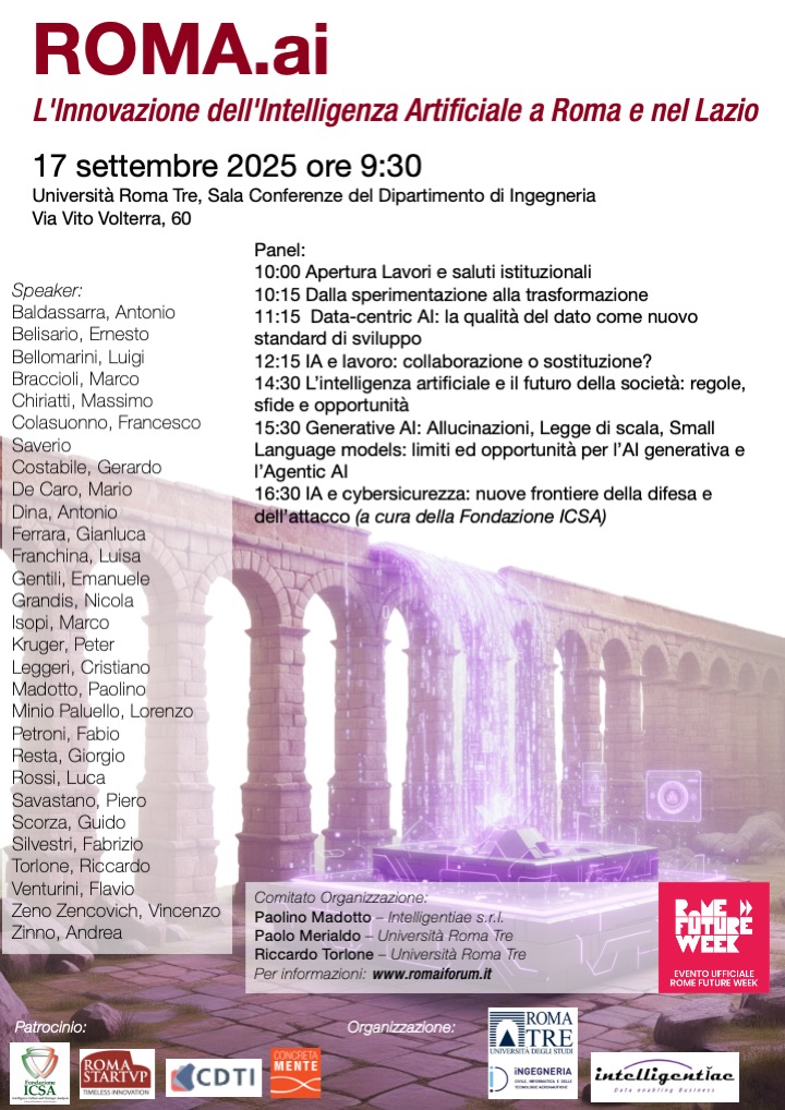 Il principale evento sull’intelligenza artificiale a Roma, presso la Facoltà di ingegneria dell’università Roma Tre.